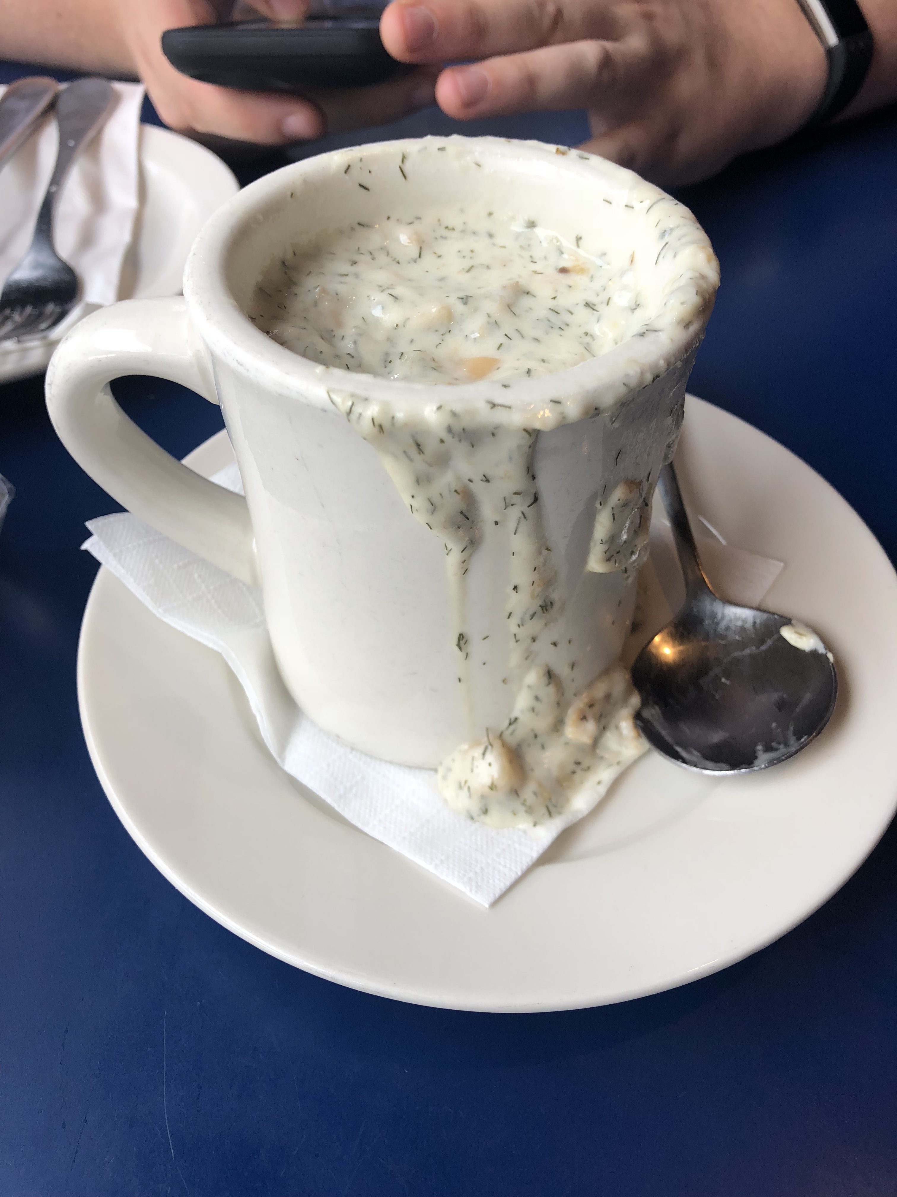 Once we had settled in to our room (where even 3000 miles can’t get us away from Bake Off), we decided to head out for a quick reccy and to get some food. After taking in some of the sites on the river near our hotel (the Barking Crab, James Hook Lobster co and the Boston Tea Party ships) we headed into Boston’s North End for some seafood at the Boston Sail Loft. Here we had our first “Boston Experience” with a mug of clam chowder along with some other seafood delights.